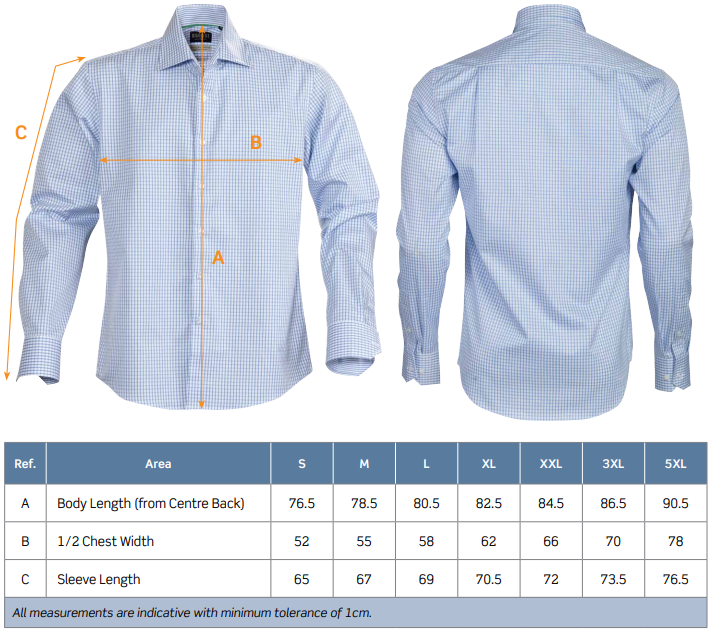 Checked pattern with coloured neck tape and contrast stripe inside cuffs, placket and collar.
